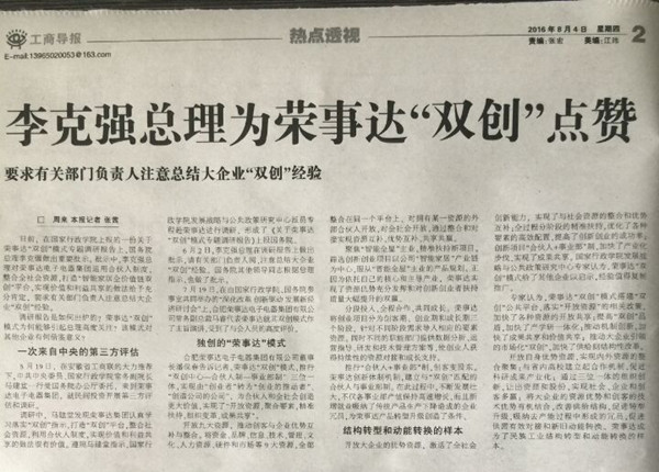 • 李克強總理為榮事達“雙創”點贊