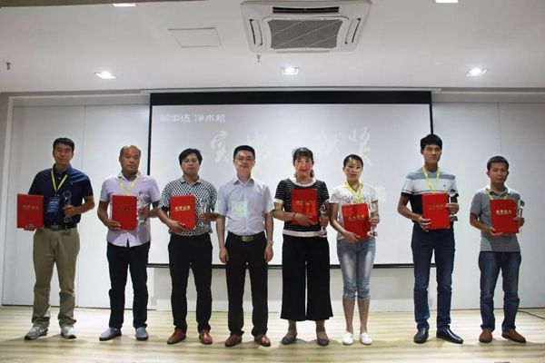 在新品發(fā)布環(huán)節(jié),王總隆重介紹了榮事達(dá)數(shù)年磨一劍,研發(fā)出的全屋智慧凈水生態(tài)系統(tǒng),這是榮事達(dá)水工業(yè)公司科研實(shí)力的一次大升級,是榮事達(dá)水工業(yè)公司國家級凈水實(shí)驗(yàn)室、業(yè)內(nèi)頂尖設(shè)計(jì)人才精心研發(fā)的成果,是對榮事達(dá)65周年的獻(xiàn)禮和向市場交出的答卷。榮事達(dá)全屋智慧凈水生態(tài)系統(tǒng)包括智能前置過濾器、中央凈水機(jī)、中央軟水機(jī)、大通量反滲透凈水機(jī)和智能管線機(jī)等一整套的新品設(shè)備,凝聚了十二大核心技術(shù),以及“防爆科技”、“集成水路”、“大通量”、“小體積”等特點(diǎn),提高安全性,增加人性化,充分符合城市家庭對全屋凈水的需求,受到廣大客戶的關(guān)注。其中600G智能反滲透凈水機(jī),在不久前榮獲有凈水行業(yè)“奧斯卡”之稱的 “泰利斯”卓越產(chǎn)品獎(jiǎng)。