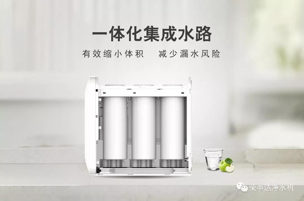推陳出新的集成簡約式機(jī)身,相較于傳統(tǒng)的壁掛箱體或櫥下柱型可以說是一次完美的“瘦身”。385mm的迷你機(jī)身寬度要得益于內(nèi)部創(chuàng)新一體化集成水路設(shè)計,一體注塑成型,接頭數(shù)由23減少到9,水路化繁為簡,不僅成為了一個“小可愛”,而且性能更加穩(wěn)定,再加上無罐設(shè)計的錦上添花,榮事達(dá)400G智能反滲透凈水機(jī)算是真正實(shí)現(xiàn)了“時尚至簡”的視覺體驗(yàn)和“靈活隨心”的安置效果。
