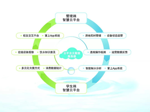 此外,榮事達(dá)著眼校園直飲水的互聯(lián)網(wǎng)化建設(shè),依托先進(jìn)的云端大數(shù)據(jù)平臺(tái)、無線網(wǎng)絡(luò)體系和智能一卡通技術(shù)等,創(chuàng)新打造ultraWiFi智慧管理系統(tǒng),系統(tǒng)直連ultraWiFi凈水主機(jī)、開水器、飲水機(jī)等終端定制設(shè)備,實(shí)現(xiàn)精細(xì)化管理。學(xué)生在使用中不僅能查詢飲水消費(fèi)記錄、在線報(bào)修設(shè)備、與校友交流等,還能擁有多元化充值方式選擇,充分享受快捷的智能化飲水體驗(yàn)。 同時(shí)設(shè)備運(yùn)營商也可通過電腦或手機(jī)APP端口接入云數(shù)據(jù)平臺(tái),異地監(jiān)測(cè)工程運(yùn)行狀況,實(shí)時(shí)掌握水電成本、消費(fèi)收益、設(shè)備狀態(tài)等數(shù)據(jù)信息,日常管理更簡單。