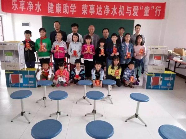 2018年6月1日,榮事達(dá)走進(jìn)紅色革命老區(qū)——金寨縣,攜手金寨希望公益服務(wù)中心及地方公益協(xié)會(huì)共同發(fā)起“給山區(qū)孩子一杯水”——援建金寨中小學(xué)凈水設(shè)備公益活動(dòng)。榮事達(dá)通過工程援建和設(shè)備捐贈(zèng)的方式,為金寨縣所有中小學(xué)援建直飲水系統(tǒng)400多套,受到學(xué)生、學(xué)校、家長們的一致好評(píng)。該項(xiàng)目被全國文明辦評(píng)為“全國百佳公益項(xiàng)目”。