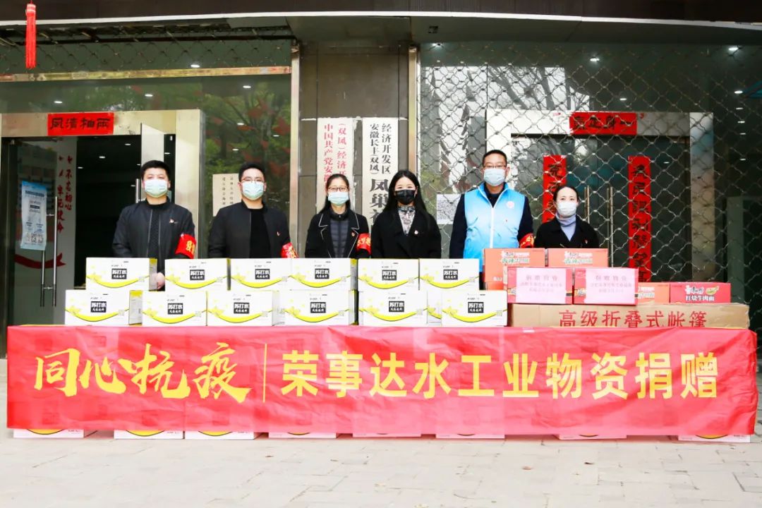 榮事達(dá)水工業(yè)集團(tuán)在得知這一消息后,第一時(shí)間聯(lián)合黨支部來到長(zhǎng)豐縣雙鳳開發(fā)區(qū)鳳巢社區(qū)黨群服務(wù)中心,為防控一線人員送去帳篷、方便面、飲用水等生活所需物資。