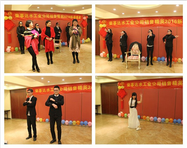 晚宴上,各部門成員紛紛表演了精彩的文藝節(jié)目,風趣幽默的小品、唯美曼妙的舞蹈、鏗鏘有力的三句半表演贏得全場一片喝彩,渠道開發(fā)部全體成員合唱歌曲《步步高》,將晚會推向高潮。文藝表演結(jié)束后進行了歡樂大抽獎,現(xiàn)場近四成員工幸運獲得榮事達凈水機、電壓力鍋等精美禮品。