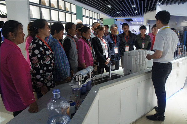 在產(chǎn)品展廳,接待人員給消費(fèi)者解說(shuō)了榮事達(dá)全線產(chǎn)品類(lèi)別,并講解了純水機(jī)、超濾機(jī)、飲水機(jī)、一體機(jī)等產(chǎn)品的不同功能及適用地區(qū)。參觀中,許多鄉(xiāng)鎮(zhèn)地區(qū)消費(fèi)者反映家里井水水垢水堿太嚴(yán)重、雜質(zhì)多,詢(xún)問(wèn)有沒(méi)有適合其使用的凈水機(jī),接待人員向其推薦了榮事達(dá)純水機(jī),詳細(xì)講解了純水機(jī)運(yùn)用RO反滲透技術(shù)、五級(jí)過(guò)濾系統(tǒng),能夠高效去除水垢、水堿、農(nóng)藥、化肥、細(xì)菌、重金屬等有害物質(zhì)的過(guò)濾效果。