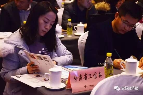與會代表閱讀由安徽省經(jīng)信委編輯的《兩化融合在行動》一書(安徽經(jīng)濟(jì)報社出版)