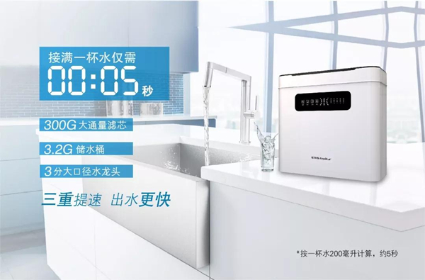 現(xiàn)代快節(jié)奏的生活下,人們對于“速度”的追求越發(fā)執(zhí)著。此次,榮事達(dá)發(fā)布的300G智能反滲透凈水機(jī)在出水速度提升上可謂是“不走尋常路”。其創(chuàng)新采用“大通量+大‘桶’量+大口徑龍頭”三重提速設(shè)計,一方面選用“300加侖超大通量濾芯”,出水速度達(dá)到傳統(tǒng)50G凈水機(jī)的6倍;另一方面,用戶可DIY選裝3.2加侖儲水桶,搭配三分大口徑凈水龍頭,進(jìn)一步強化出水效率,接滿一杯200毫升水僅需5秒,讓用戶隨時享受不等待、不斷水的理想生活。