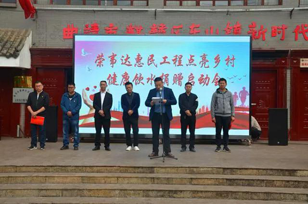 •     4月29日, 2020“萬企幫萬村”精準扶貧行動在云南省曲靖市東山鎮正式啟動。榮事達水工業攜手曲靖市麒麟區工商聯、扶貧辦、衛健委,以“精準扶貧點亮鄉村,健康飲水公益惠民”為主題開展系列幫扶活動,幫助改善結對幫扶村的公共基礎設施建設,全力助推麒麟區脫貧攻堅工作。