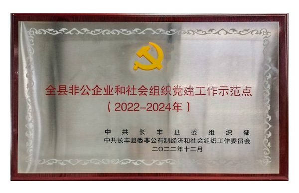 會議傳達學習了省委、市委非公工委擴大會精神,為11家省、市、縣級“雙強六好”、“雙比雙爭”及黨建工作示范點獲獎單位授牌。縣委常委、組織部部長張偉親自向合肥榮事達水工業設備有限責任公司黨支部代表頒發了“2022-2024年度全縣非公企業和社會組織黨建工作示范點”獎牌。這次合肥榮事達水工業設備有限責任公司黨支部是繼2016-2022年連續5星黨支部后,再次評定為縣級非公黨建工作示范點。體現了中共長豐縣委組織部對榮事達水工業黨支部工作的充分肯定和高度評價。