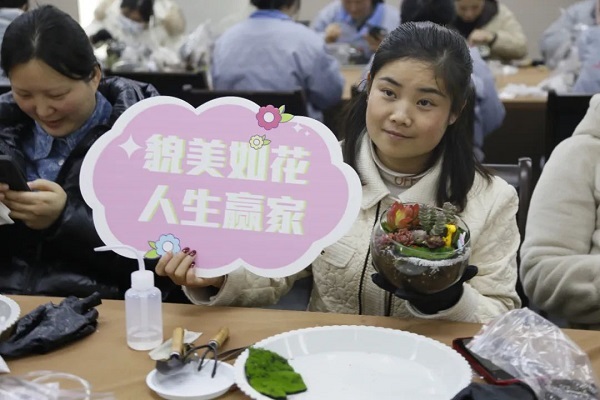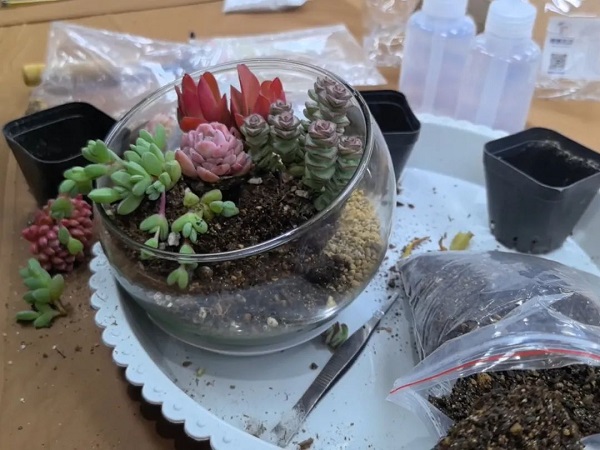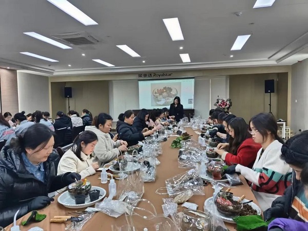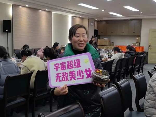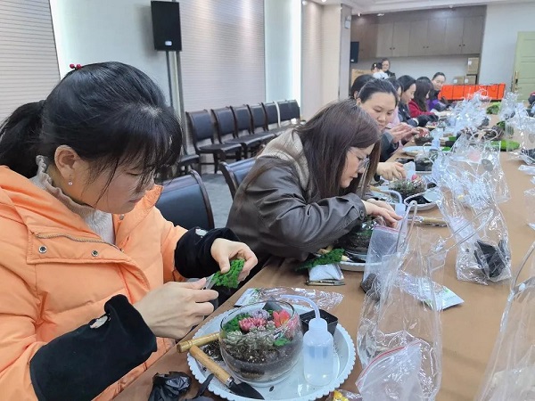 在DIY過程中,大家互相交流、分享心得,笑聲和談話聲此起彼伏。有的女神選擇了簡約風格,將多肉植物種植在小巧精致的花盆里,展現(xiàn)出一種清新脫俗的美;有的則選擇了色彩豐富的搭配,將不同顏色的多肉組合在一起,創(chuàng)造出一幅幅生動的畫面。