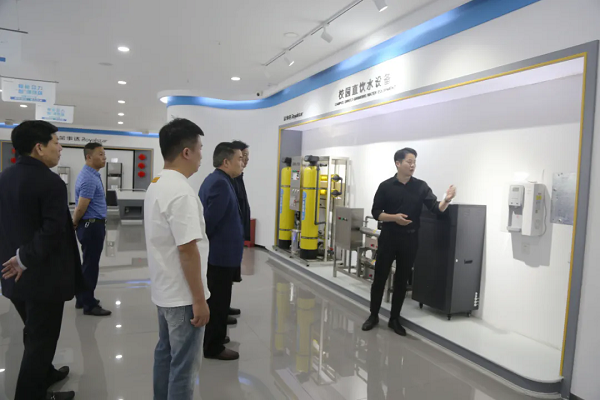 領(lǐng)導(dǎo)一行深入榮事達(dá)智慧水世界展廳,聽取了講解員對(duì)榮事達(dá)水工業(yè)發(fā)展歷程、榮譽(yù)成就、公益行動(dòng)及黨建引領(lǐng)的全面介紹。