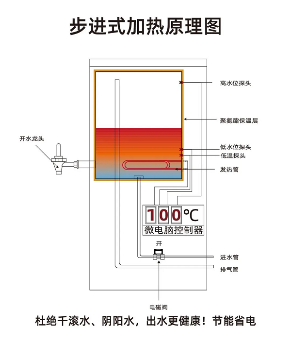 此次用于陜西省寶雞市鳳縣雙石鋪中學的RSD-60K步進式開水器采用步進式加熱技術,多級過濾系統和七重保護功能等,杜絕千滾水、陰陽水,連續供應開水,節能省電,出水更健康,使用安全放心。