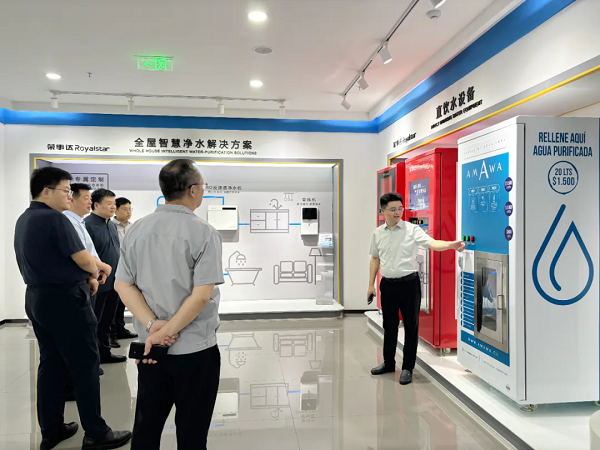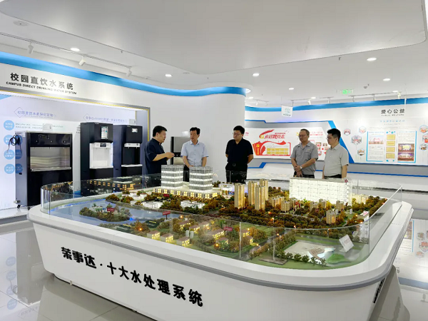 - 7月10日, 三門峽市城鄉(xiāng)一體化示范區(qū)(高新區(qū))黨工委委員張立新,大唐新能源產業(yè)園運營中心主任、招商局副局長楊華夏,大唐新能源產業(yè)園運營中心招商部長李海強一行蒞臨榮事達水工業(yè)集團參觀交流,榮事達水工業(yè)集團董事長雷鳴,總經理王悅生,生產制造總經理孫曉峰熱情接待。此次參觀中,三門峽市城鄉(xiāng)一體化示范區(qū)領導一行首先深入榮事達智能化生產車間,近距離參觀了集團先進的全智能化生產線及七大實驗室。隨后,領導們移步至智慧水世界展廳,全面了解了榮事達水工業(yè)集團的發(fā)展歷程、輝煌成就、公益貢獻及黨建引領下的企業(yè)文化。在展廳內,領導們對榮事達水工業(yè)集團的全屋智慧凈水系統(tǒng)、社區(qū)智慧飲水系統(tǒng)、醫(yī)院用水處理系統(tǒng)、農村安全飲水系統(tǒng)、校園直飲水系統(tǒng)等十大水處理系統(tǒng)表現出了濃厚的興趣。這些系統(tǒng)不僅體現了榮事達在水處理領域的深厚技術積淀,也彰顯了其致力于通過科技創(chuàng)新改善民眾生活質量的堅定信念。在座談會上,領導們認真觀看了榮事達企業(yè)宣傳片和榮事達凈水工廠宣傳片。董事長雷鳴,作為地道的河南人,對家鄉(xiāng)領導的到來表達了由衷的歡迎。他還就集團的多元化產品矩陣、市場發(fā)展戰(zhàn)略及持續(xù)創(chuàng)新能力進行了詳細介紹。總經理王悅生特別強調集團順應新基建趨勢,結合物聯網、大數據和云計算技術,首創(chuàng)社區(qū)智能凈水工廠項目,展現凈水科技創(chuàng)新實力,并獲得20項專利,行業(yè)領先。三門峽市城鄉(xiāng)一體化示范區(qū)(高新區(qū))黨工委委員張立新對來自家鄉(xiāng)并在合肥取得輝煌事業(yè)成就的雷鳴董事長表達了高度的贊賞與由衷的欣喜。他特別指出,榮事達水工業(yè)集團在水處理領域的卓越成就令人震撼,不僅展現了企業(yè)強大的技術實力和市場競爭力,更彰顯了其勇于創(chuàng)新、追求卓越的精神風貌。希望以此次交流為契機,增進聯絡,架起一座交流互通的橋梁。