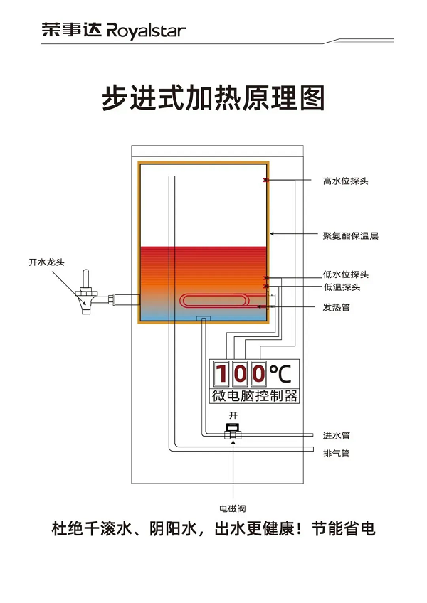 設(shè)備采用了RO反滲透技術(shù)、多級凈化等工藝,有效去除了水中的泥沙、鐵銹、重金屬、余氯等有害物質(zhì),確保水質(zhì)干凈、安全。同時,步進式加熱設(shè)計避免了“陰陽水”的產(chǎn)生,保證了連續(xù)供應(yīng)開水的品質(zhì)。