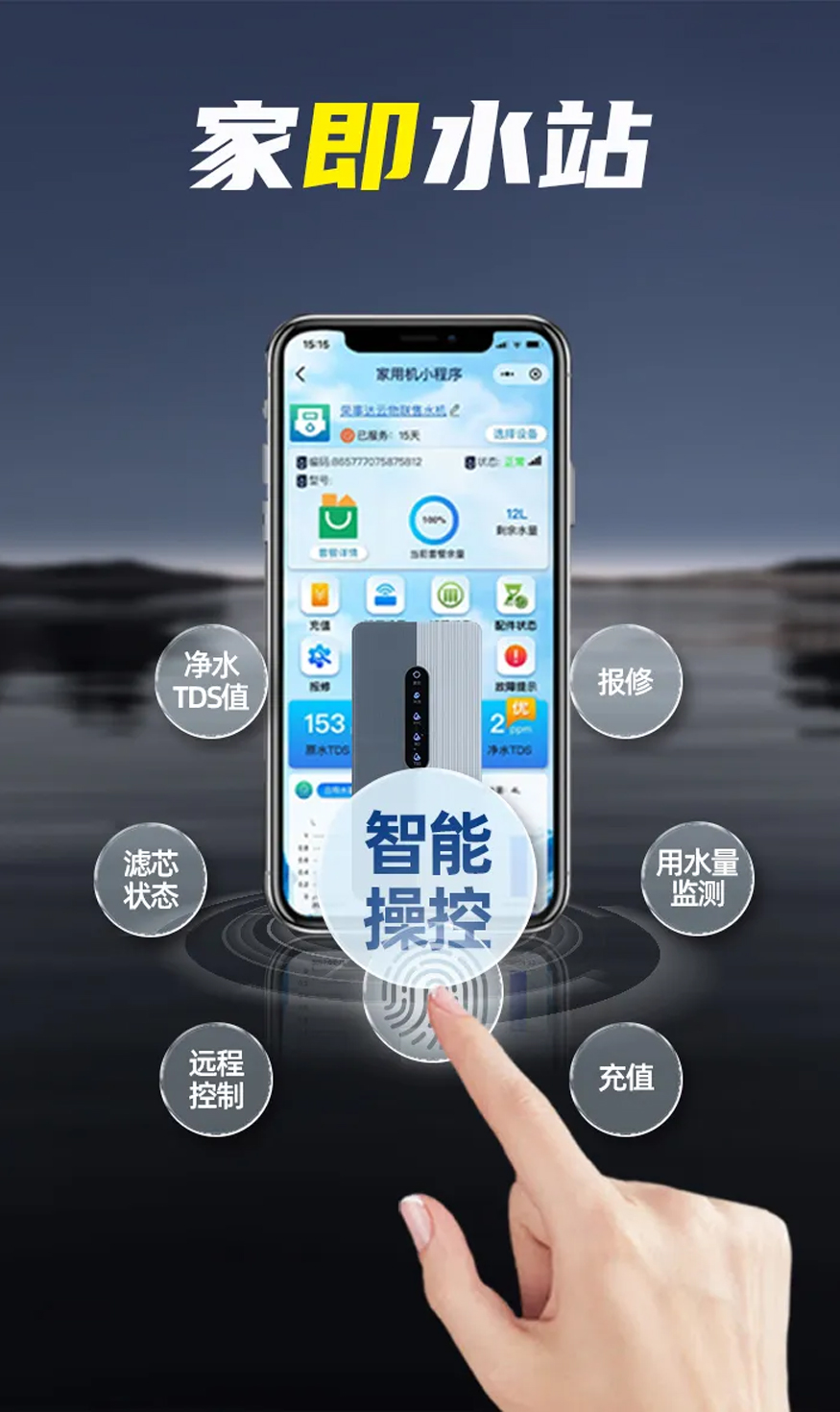 掃碼激活專屬小程序,水質(zhì)TDS值、濾芯壽命、用水量等關(guān)鍵數(shù)據(jù)實時躍然屏上。用戶抬眼即見安心,用水盡在掌握。