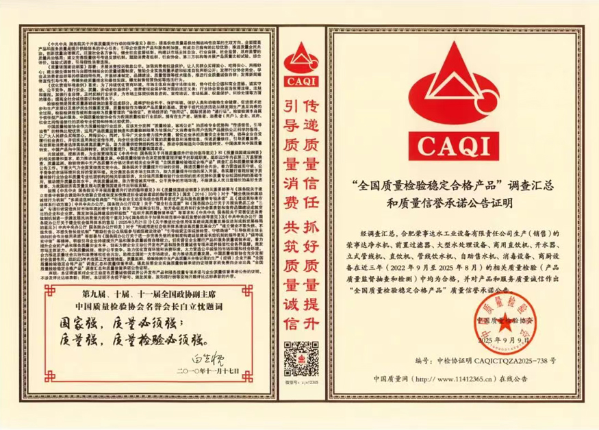未來,榮事達水工業將繼續秉持“質量為先、誠信為本”的理念,在凈水技術創新與產品品質升級上持續發力,打造全場景、多領域的飲水解決方案,為推動我國凈水行業高質量發展與“質量強國”建設貢獻更多力量。