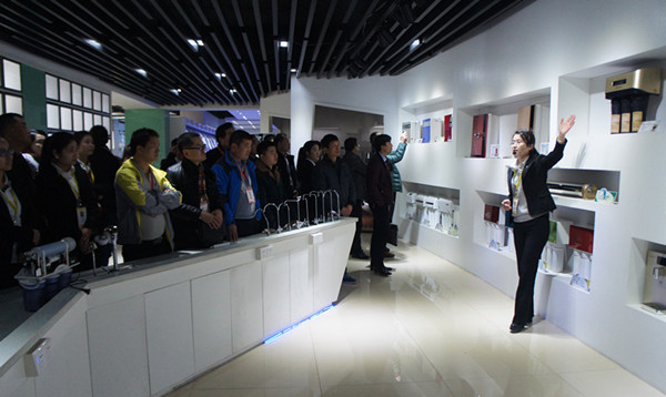 解說(shuō)員還提到企業(yè)自主研發(fā)的雙膜專利技術(shù),一機(jī)實(shí)現(xiàn)凈、飲雙效,并現(xiàn)場(chǎng)為我們演示使用,“污水經(jīng)凈化由雙龍頭流出,一個(gè)日用一個(gè)飲用,飲用水可以直接喝!” 說(shuō)著解說(shuō)員便端起剛凈化的飲用水直接喝下,前一秒的污水,后一刻就能直接飲用,引得我們眾多參觀者驚嘆、鼓掌。當(dāng)天,解說(shuō)員還向我們普及了RO反滲透膜、五級(jí)凈化系統(tǒng)等諸多凈水知識(shí),尤為專業(yè)的行業(yè)分析與產(chǎn)品解讀,解答了我們?cè)S多問(wèn)題,豐富了我們的認(rèn)知。